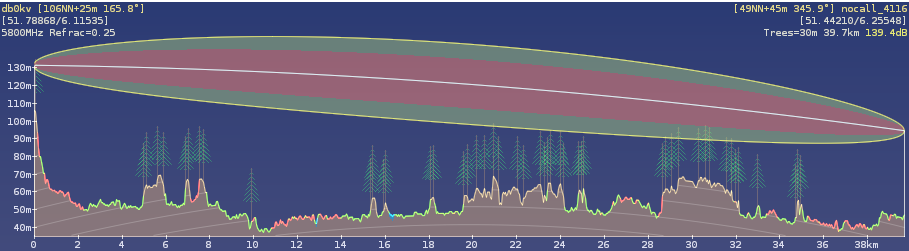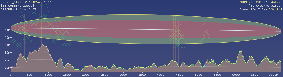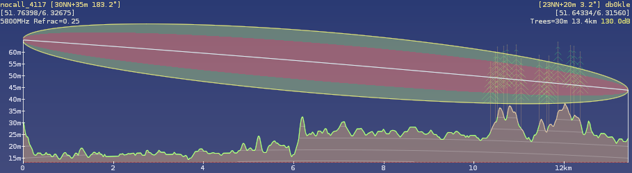 Mit geeigneten Tools der HamnetDB wurden mit den derzeit vorliegenden Standortdaten erste Linkstreckenprofile erstellt und auf ihre praktische Realisierbarkeit hin untersucht.