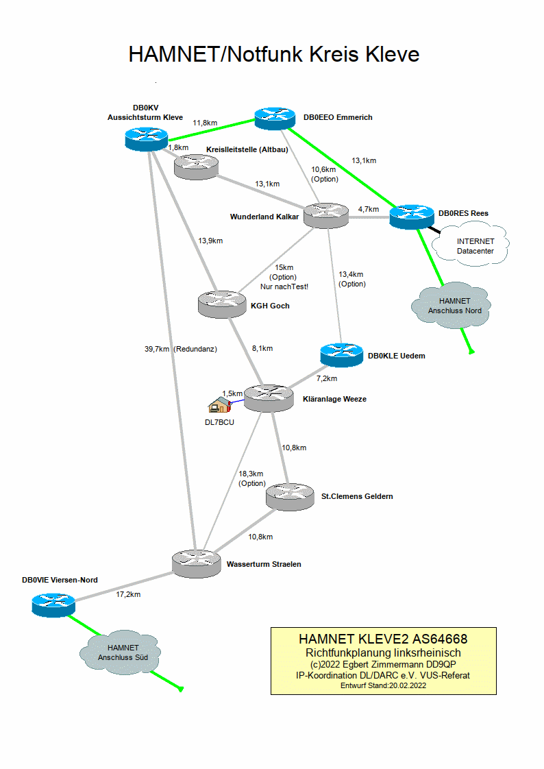 Machbarkeitsstudie zu Planung, Entwicklung, Aufbau, und Betrieb eines richtfunkbasierten, notfunktauglichen HAMNET im linksrheinischen Teil des Kreises Kleve mit mehrfach redundanter Anbindung an das europäische HAMNET